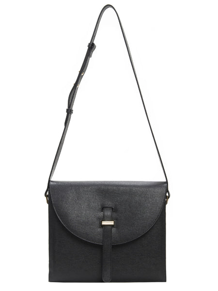 The classic black lux leather is smooth yet structured becoming a must have for day to night dressing. With two internal pouch pockets, this compact design is deceptively spacious. Finished with gold hardware this black clutch doubles as a shoulder bag with the easily adjustable strap.