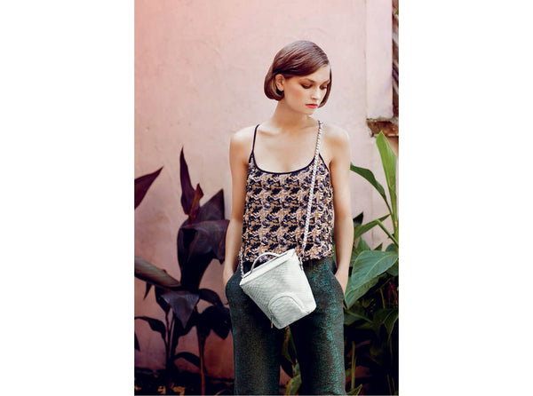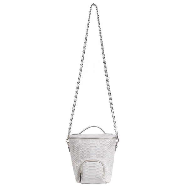 This beautifully crafted shoulder bag in Rock Snake leather features an exterior pocket that is inspired by vintage Camera Bags. The detachable chain allows you to carry it by the handle for that ultra sleek and distinct look or across the body for a more relaxed look.