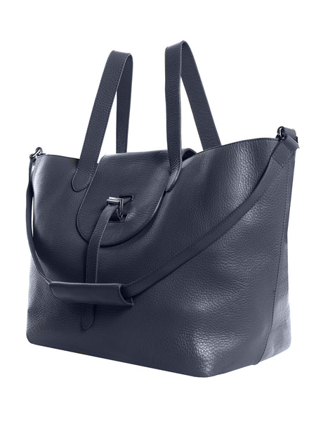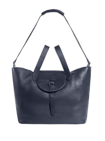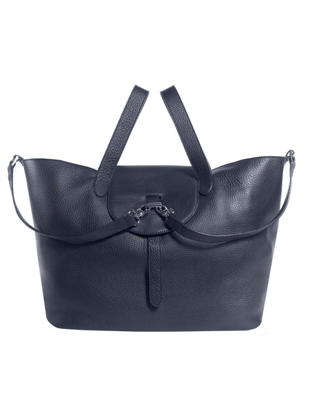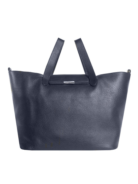 Crafted from soft textured-leather and finished with silver hardware, this midnight-blue tote makes for a cool carryall. The spacious interior offers ample room for your monthly magazine and the internal zipped pocket is ideal for securing small essentials.
